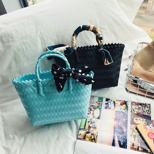 20代 30代 40代 秋 メルカドバッグ スカーフ付き 編みかごバッグ 全3色 RB-R3-BA04-SA08-0066