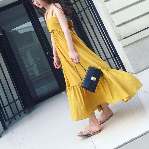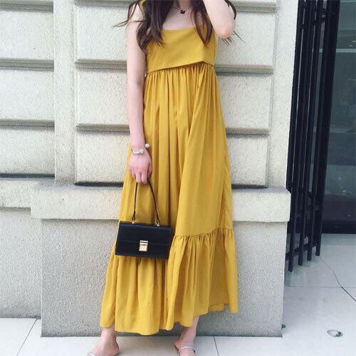 20代 30代 40代 秋 バッグリボン イエロー マキシワンピース RB-R3-BA04-SA08-0086