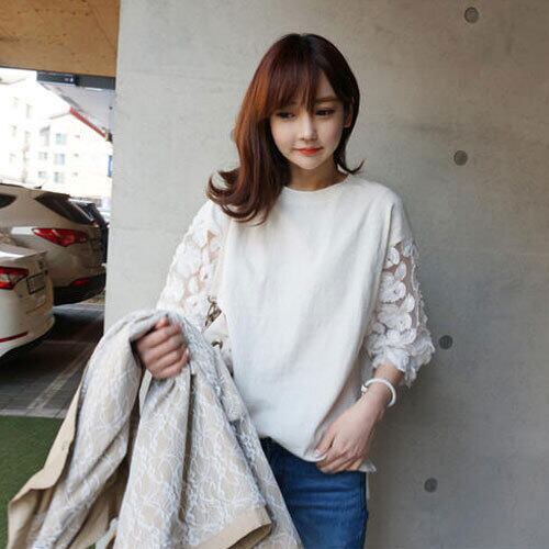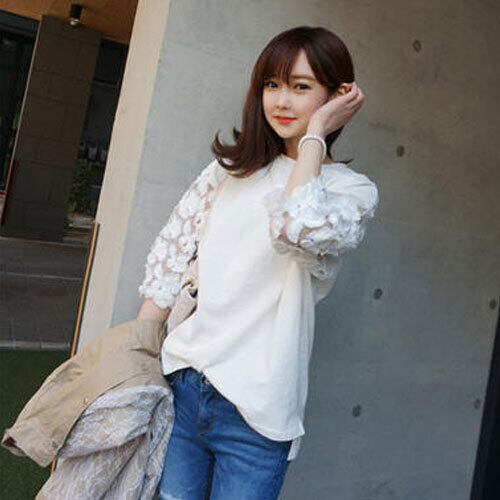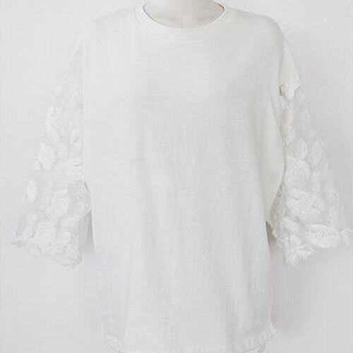 20代 30代 40代 秋 スカラップ刺繍 トップス 丸首 プルオーバー 七分袖 RB-R3-BA04-SA08-0097