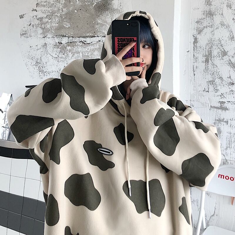 トップス 主婦 OL 韓国風 20代 30代 40代 ウシ柄 ビッグ パーカ オーバーサイズ ゆるダボ RB-R3-09-BA07-NK-0015