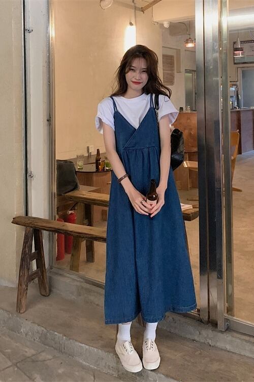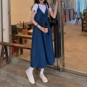 ワンピース 主婦 OL 韓国風 20代 30代 40代 デニム キャミソール ワンピース ロング 大人女子 RB-R3-09-BA07-NK-0043