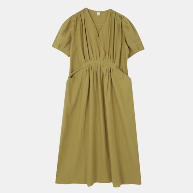 ワンピース主婦 OL 韓国風 20代 30代 40代 ロング ワンピース フレア Vネック 上品 きれいめ RB-R3-09-BA07-NK-0052
