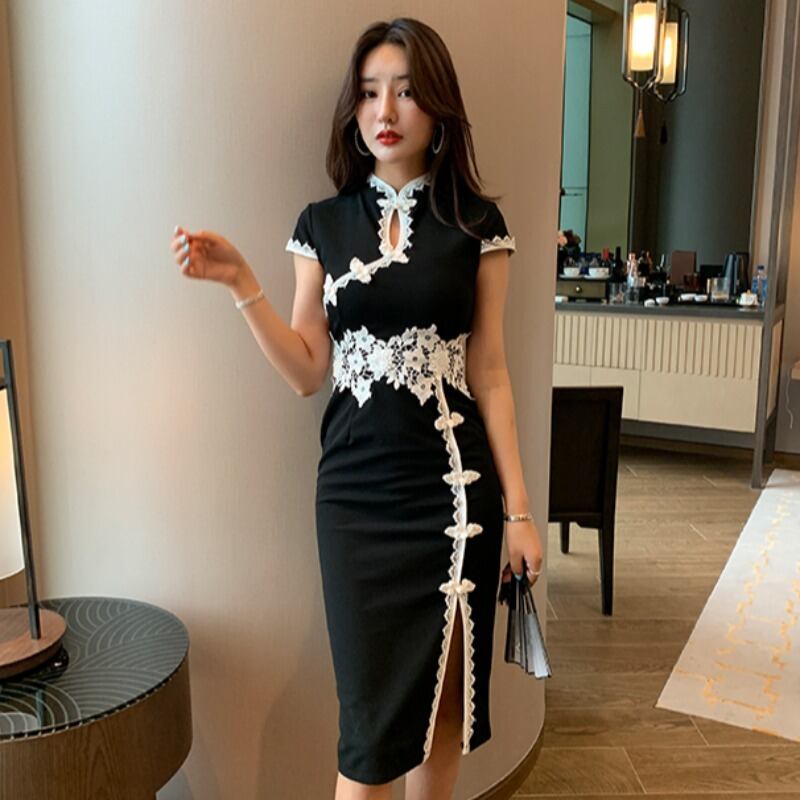 ワンピース 20代 30代 40代 秋 ワンピース 細見せ レトロ ホワイト+ブラック RB-R3-09-BA21-CN-0001