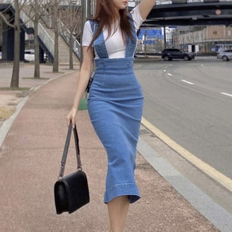 ワンピース 20代 30代 40代 秋 ワンピース ストラップドレス デニム ロング カジュアル シンプル ブルー RB-R3-09-BA21-CN-0009