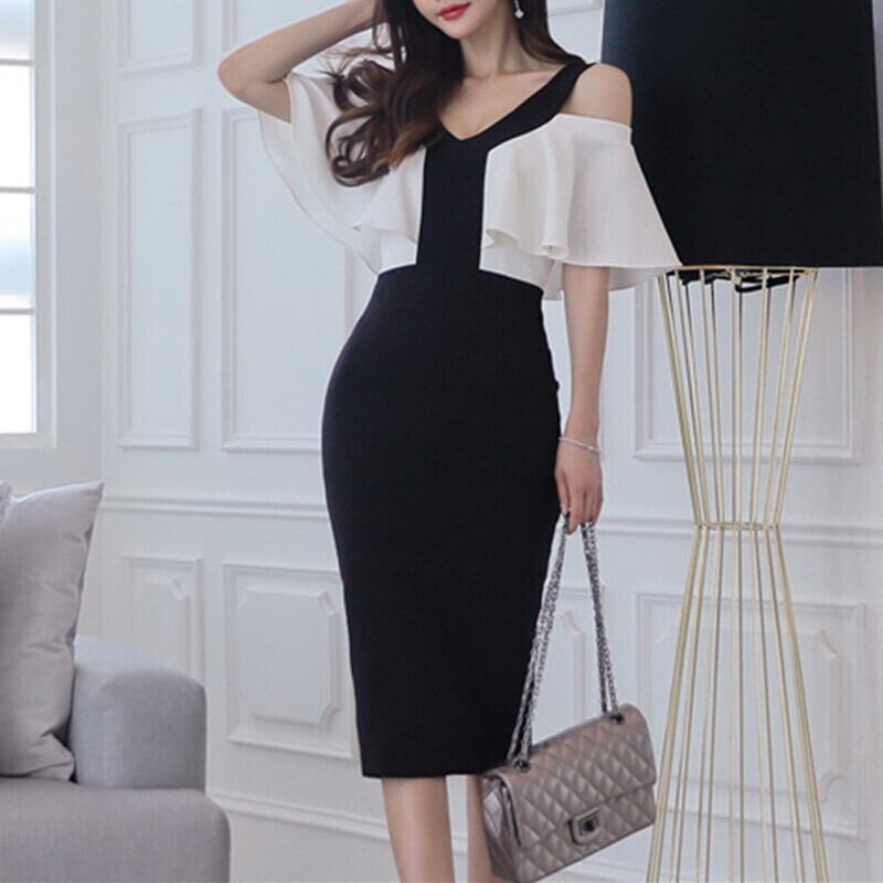 ワンピース 20代 30代 40代 秋 ワンピース フェミニン ペプラム OL/フォーマル レトロ 気質溢れる 美人度アップ 通勤 ハイウエスト ホワイト+ブラック RB-R3-09-BA21-CN-0029