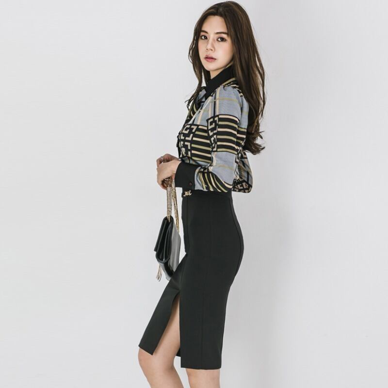 セットアップ 20代 30代 40代 秋 セットアップ OL/フォーマル 綺麗め プリント 長袖 シャツ+スカート RB-R3-09-BA21-CN-0026