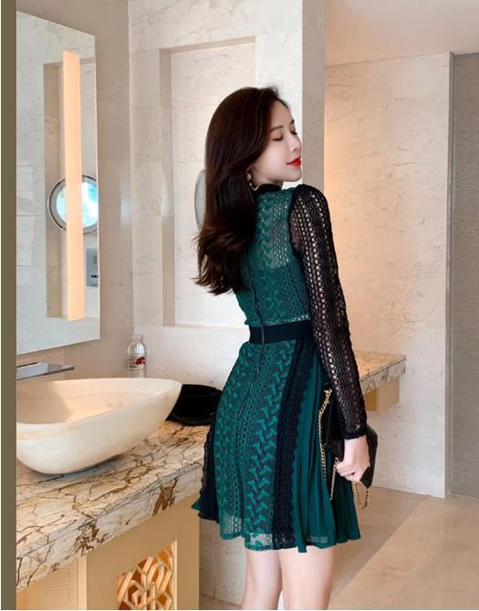 ワンピース 20代 30代 40代 秋 ワンピース レース ロングワンピース 気質 長袖 Aライン レトロ 視線集中 おしゃれ 魅せられる 魅力的な気質を強調する ブラック+グリーン RB-R3-09-BA21-CN-0062