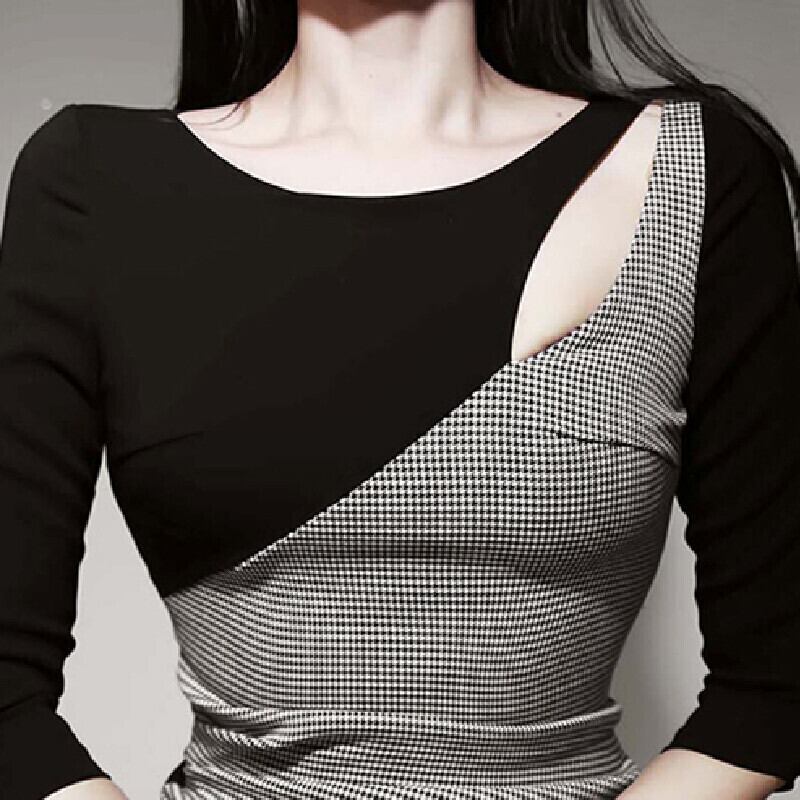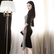 ワンピース 20代 30代 40代 秋 ワンピース 切り替え シンプル OL/フォーマル 視線集中 シンプル ブラック+グレー RB-R3-09-BA21-CN-0048