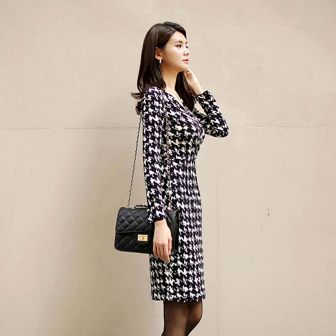 ワンピース 20代 30代 40代 秋 ワンピース セクシー 千鳥柄 Vネック 肌触り 秋冬 暖かい OL 通勤 フォーマル 着痩せ 洗練される RB-R3-09-BA21-CN-0052