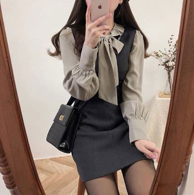 セットアップ 20代 30代 40代 秋 セットアップ ワンピース レディース ビッグリボン かわいい レトロ ガーリー セットアップ ボウタイ ブラウス × ジャンパースカート ミニワンピ 可愛い 大人可愛い 大人女子 デイリー デイリー使い お出かけ おでかけ デート 女子会 RB-R3-09-BA26-CN-0005