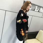 トップス 20代 30代 40代 秋 トップス アウター カーディガン ニット セーター 刺繍ワッペン 虎 花 鳥 蝶 ブラック 長袖 ドロップショルダー Vネック パールボタン ロング丈 ミドル丈 オーバーサイズ ビッグシルエット ゆったり ラフ ルーズ こなれ感 アクティブ 個性的 カジュアル オシャレ デイリー お出かけ ショッピング 秋 冬 レディース RB-R3-09-BA24-CN-0010