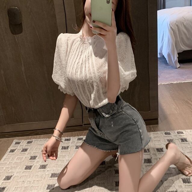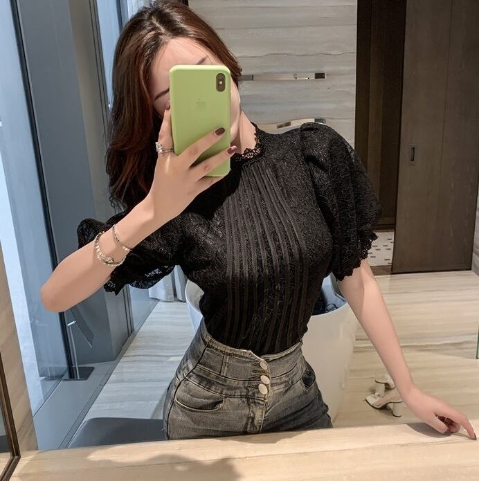 トップス 20代 30代 40代 秋 トップス ブラウス レース 3色展開 ブラック ホワイト ベージュ 無地 五分袖 ボリューム袖 パフスリーブ 透け感 大人 可愛い 甘め 上品 きれいめ カジュアル クラシカル 華やか デート お呼ばれ デイリー オフィス 春 夏 秋 レディース RB-R3-09-BA24-CN-0015