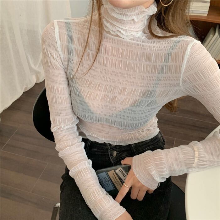 トップス 秋スシースルー ハイネック フリル RB-R3-09-BA13-NK-0008