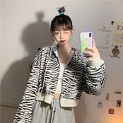 韓国風 アウター 20代 30代 40代 秋 アウター パーカー フーディー ゼブラ柄 アニマル柄 2色展開 ライトグレー ピンク 長袖 ボリューム袖 ドロップショルダー フード ショート丈 ロゴ 大人 可愛い カジュアル オシャレ クール こなれ感 着痩せ デイリー ルームウェア リラックス お出かけ デート 春 秋 大きいサイズ レディース RB-R3-09-BA24-CN-0021