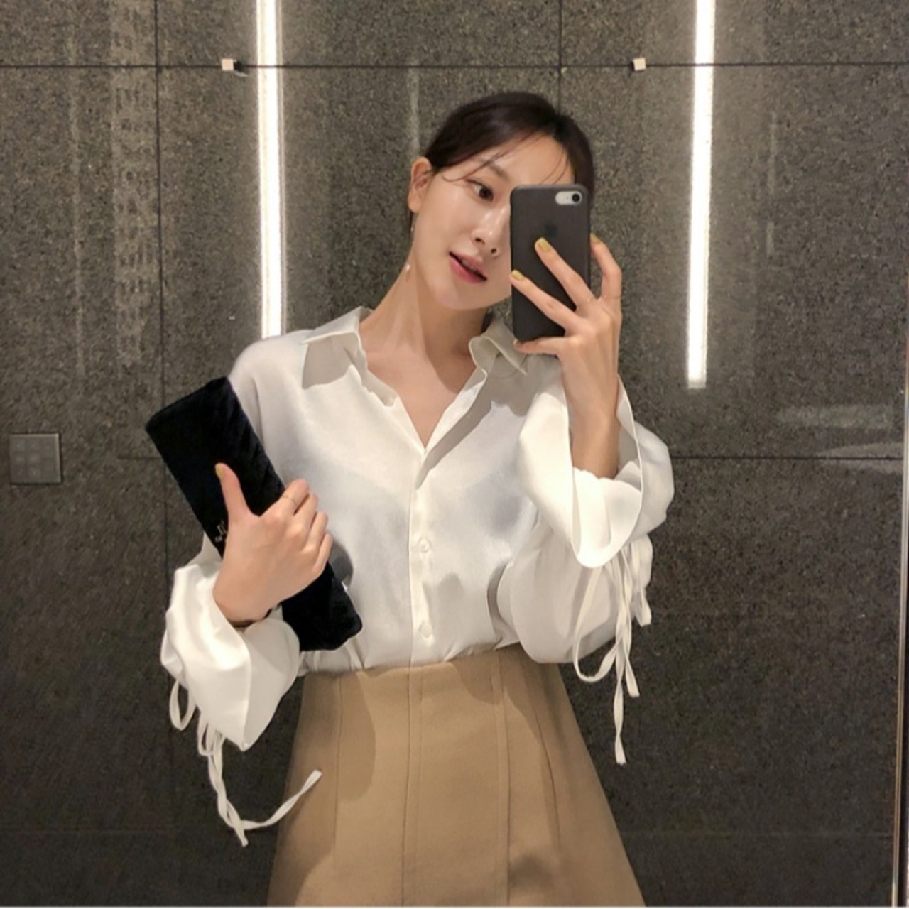 トップス 秋 シルクタッチシャツ リボン 光沢感 RB-R3-09-BA13-NK-0026