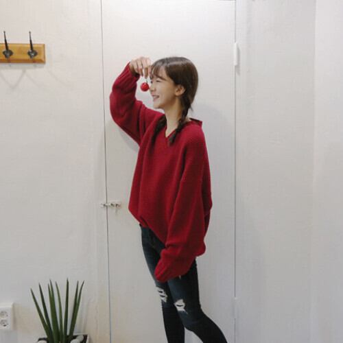 韓国風 トップス 20代 30代 40代 秋 韓国風 Vネック 長袖 合わせやすい ニット・セーター・トップス RB-R3-09-BA12-SA-0007