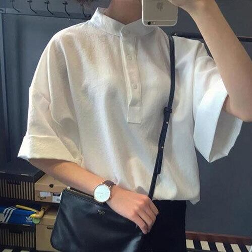 韓国風 トップス 20代 30代 40代 秋 ベーシックスタイル カジュアル 無地 スタンド ビーデイング中袖 合わせやすい シャツ・トップス RB-R3-09-BA12-SA-0010