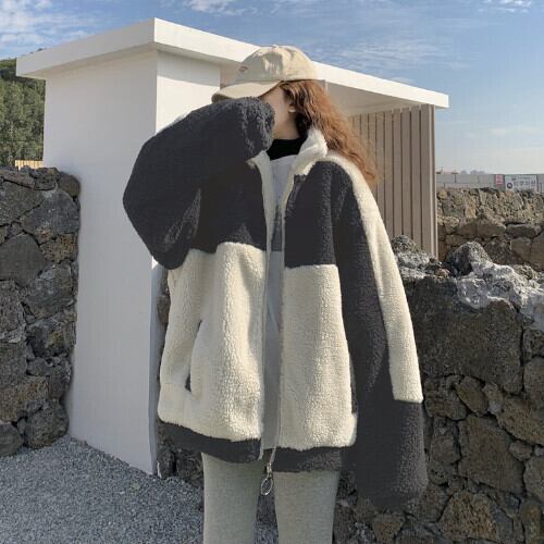 アウター 20代 30代 40代 秋 ゆったり 韓国ファッション 厚手 ジェントル ハイネック 長袖 カラーブロック パーカー・トップス RB-R3-09-BA12-SA-0019