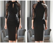 ワンピース 20代 30代 40代 秋 ワンピース 7分袖 ブラック 黒 レース切り替え スリム セクシー オシャレ 魅力的 気質よい RB-R3-09-BA21-CN-0021