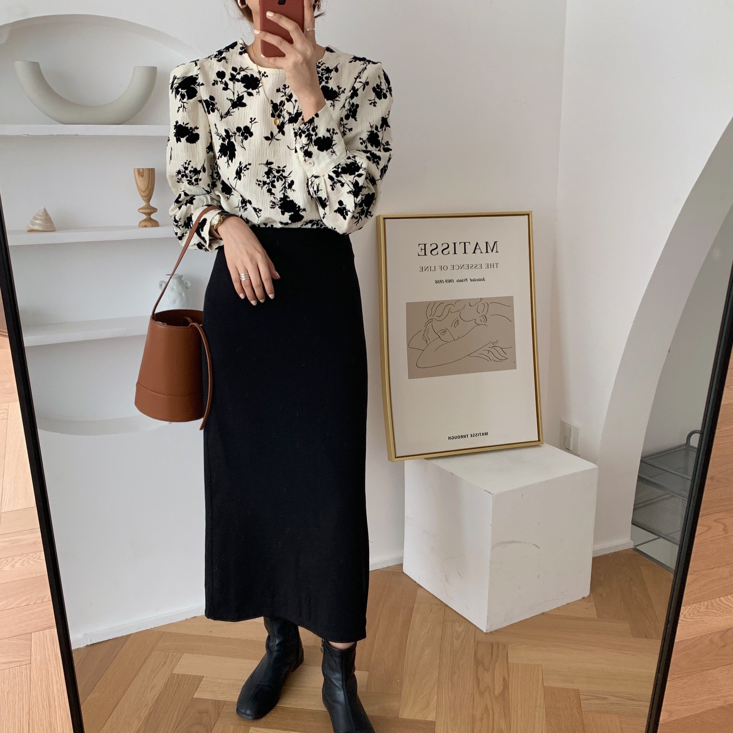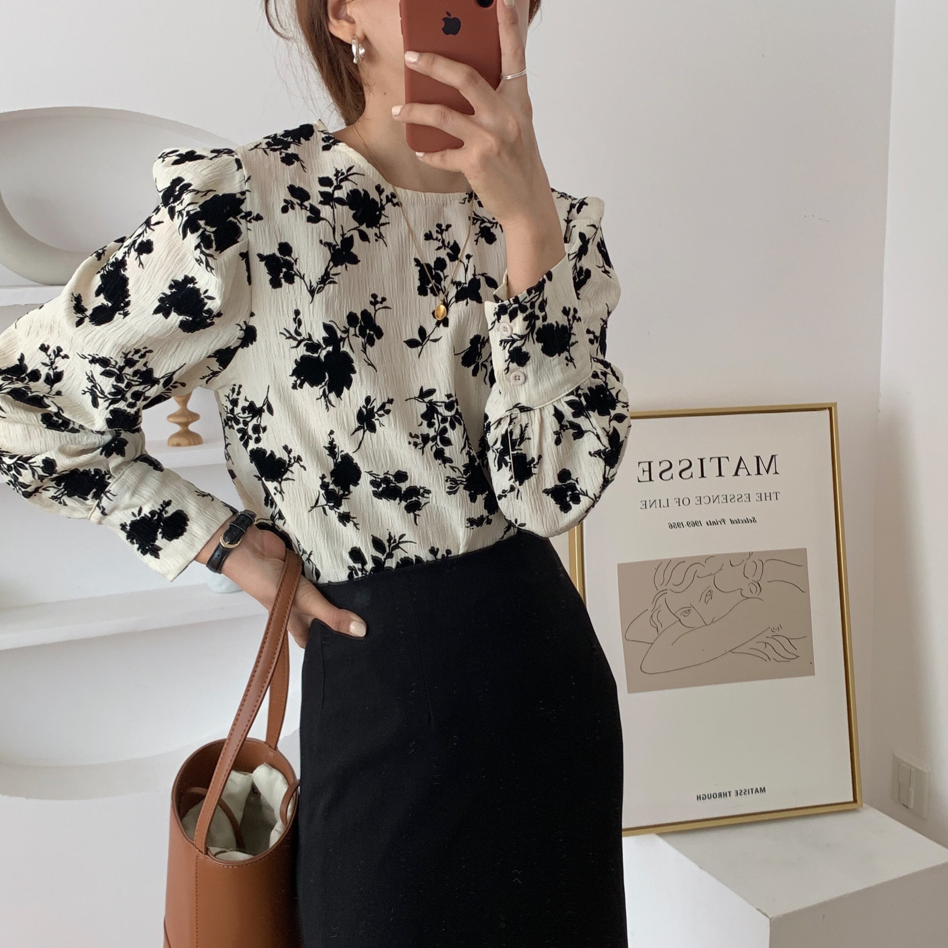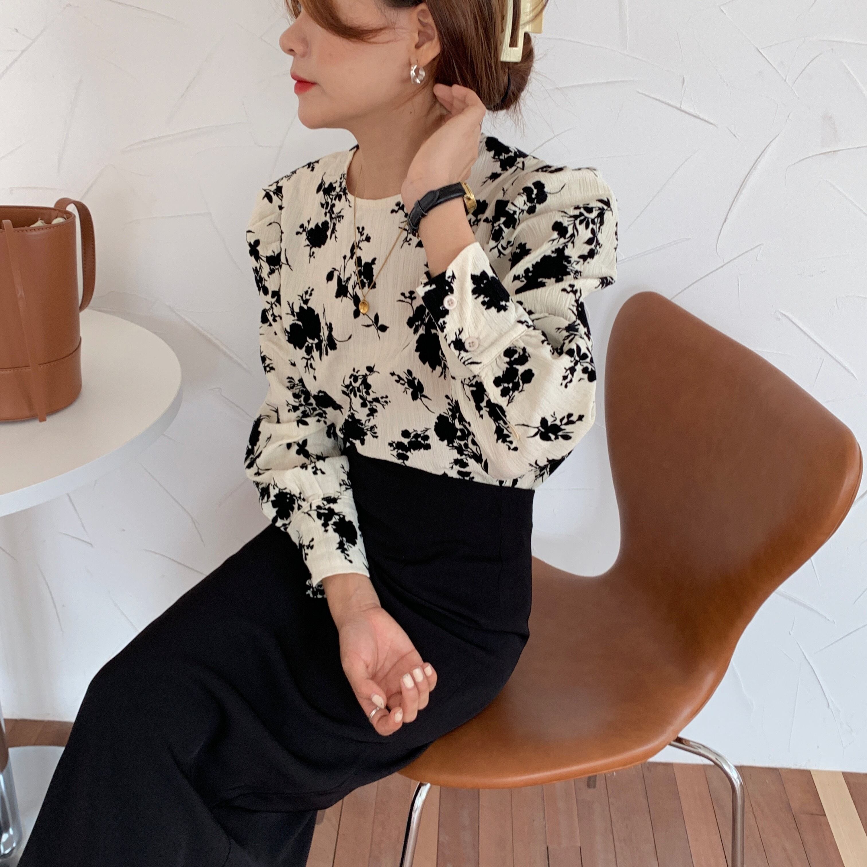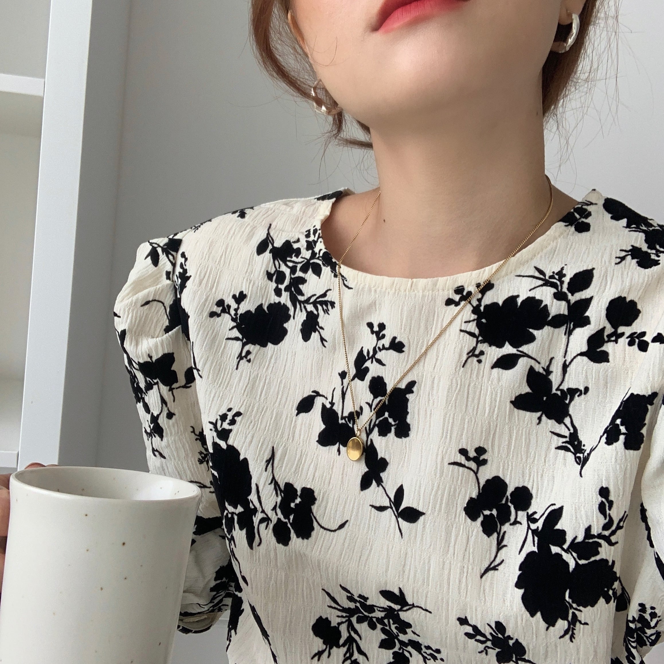 トップス 20代 30代 40代 秋 花柄 シャツ ブラウス トップス 長袖 クルーネック モノトーン レディース 秋冬 RB-R3-09-BA22-CN-0008