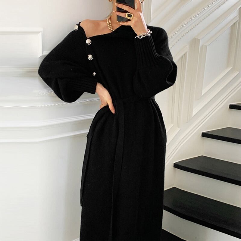 ワンピース 秋 ボタン ニット セーター ワンピース RB-R3-09-BA13-NK-0037