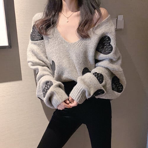 トップス 20代 30代 40代 秋 セクシー ゆったり Vネック バットスリープ 長袖 厚手 刺繍 ニット・セーター・トップス RB-R3-09-BA12-SA-0059