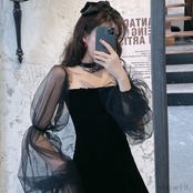 韓国風 ワンピース 20代 30代 40代 秋 大人可愛い スウィート パフスリーブ 切り替え ハイウエスト プリーツスカート デートワンピース RB-R3-09-BA30-CN-0006