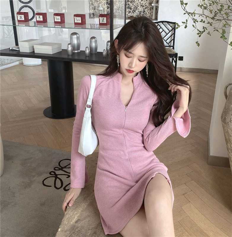 ワンピース 20代 30代 40代 秋 質感注目させ合わせやすい気質よいスリットスタンドネックセクシーワンピース RB-R3-09-BA30-CN-0028