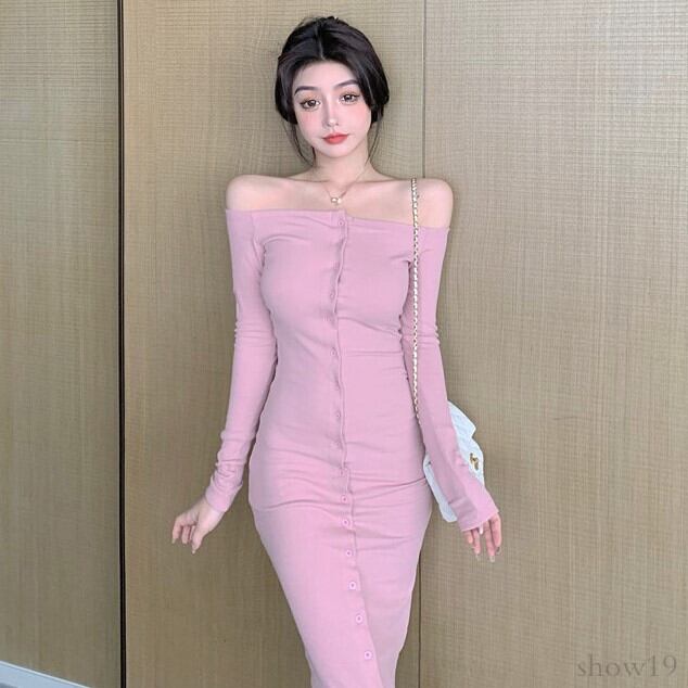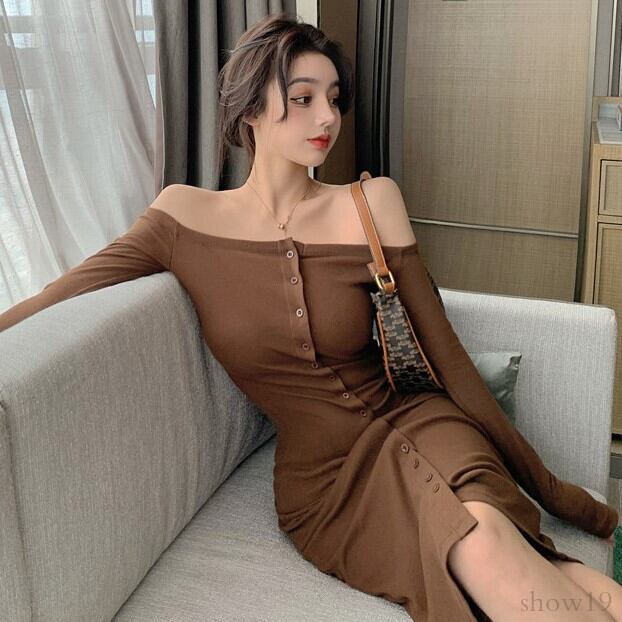 ワンピース 20代 30代 40代 秋 韓国系合わせやすい気質よいスリムワンピースオープンショルダーセクシーワンピース RB-R3-09-BA30-CN-0031