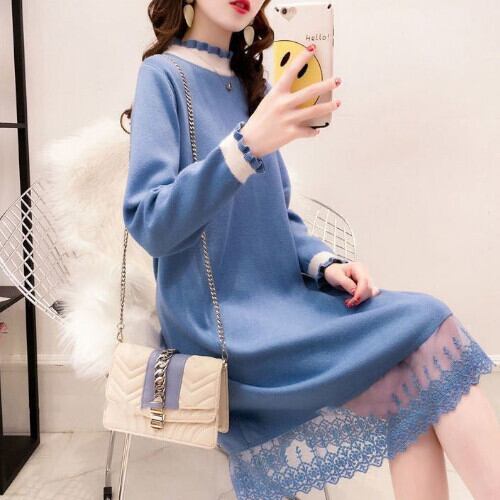 ワンピース 20代 30代 40代 秋【dress】デート ニット レース 切り替え エレガント 気質アップ RB-R3-09-BA14-SA-0017