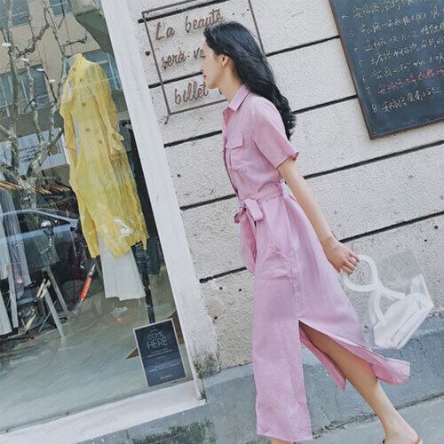 ワンピース 20代 30代 40代 秋 シャツワンピース気質満点エレガントスリム無地3色ベルト付き RB-R3-09-BA14-SA-0008