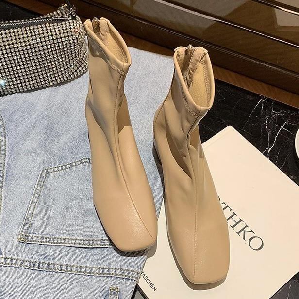 シューズ 20代 30代 40代 秋 レトロ無地ジッパースクエアトゥミドル丈ブーツ RB-R3-09-BA29-CN-0031