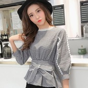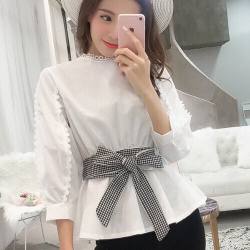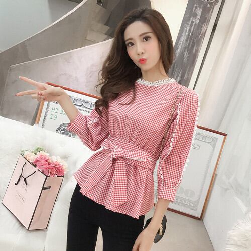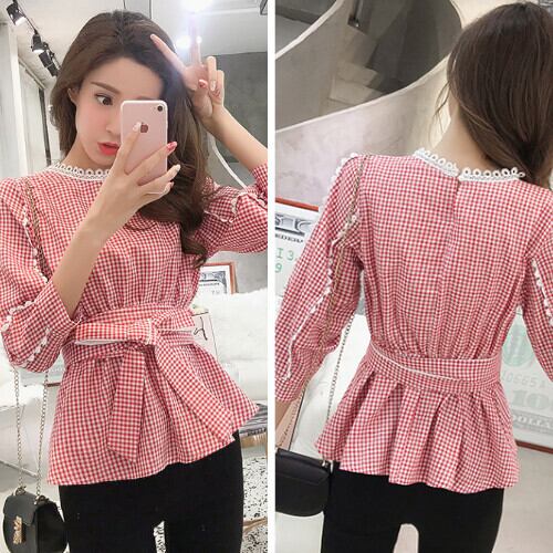 トップス 20代 30代 40代 秋 シャツスウィートスリム人気リボン付きチェック柄気質アップ RB-R3-09-BA14-SA-0026