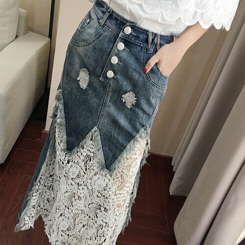 セットアップ 20代 30代 40代 秋 女子力アップ セットアップ レース ボートネック ブラウス デニムスカート RB-R3-09-BA14-SA-0039