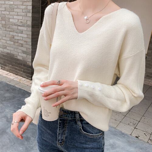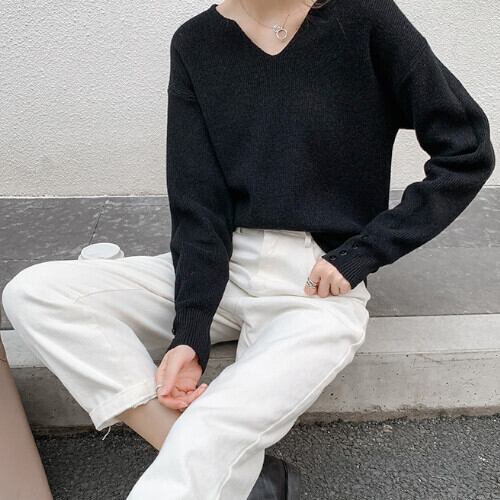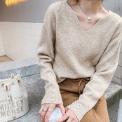 トップス 20代 30代 40代 秋 大活躍 シンプル 無地 vネック ボタン付き 4色 合わせやすい セーター RB-R3-09-BA14-SA-0040