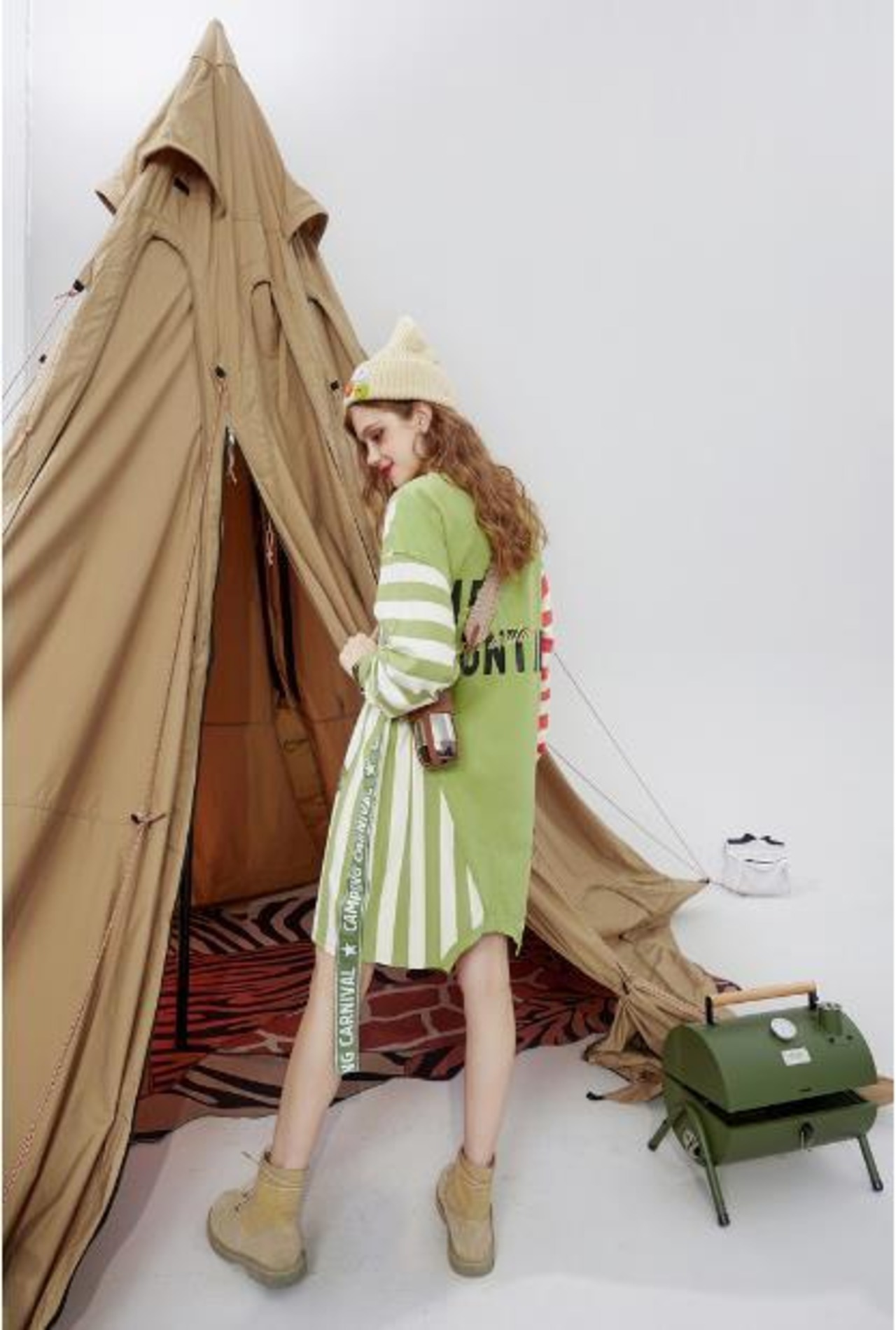 ワンピース 20代 30代 40代 秋 ワンピース スウェット パーカー トレーナー ショート丈 長袖 ストライプ ライン ロゴ ラウンドネック ワッペン カジュアル RB-R3-09-BA22-CN-0020