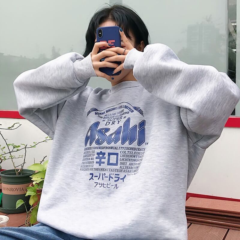 トップス 秋 ラウンドネック長袖 カジュアルプリント 裏起毛パーカーRB-R3-09-BA12-NK-0017