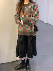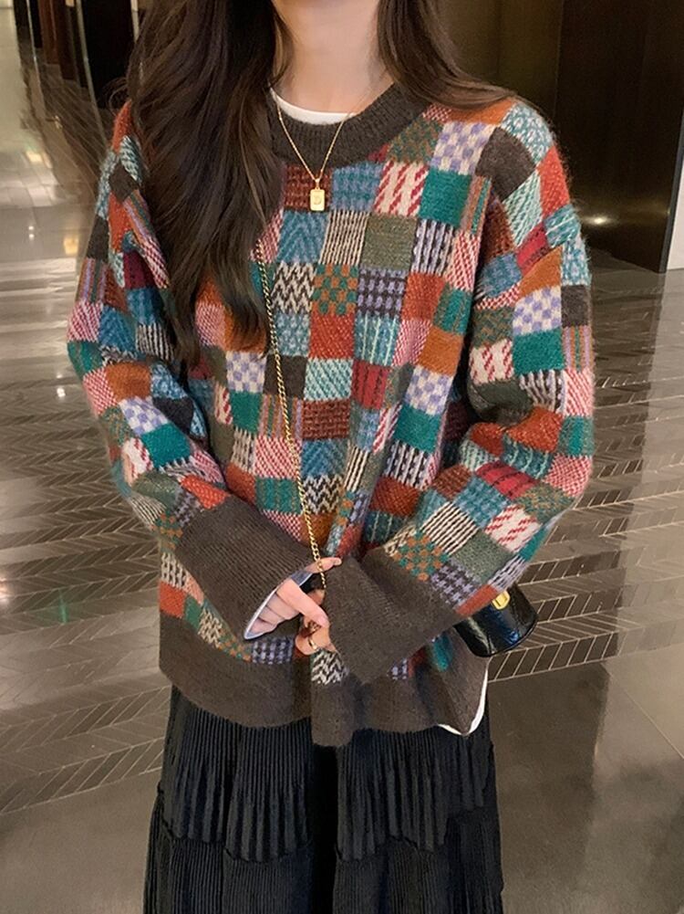 トップス 秋 カジュアル ラウンドネック 長袖 カラーブロック おしゃれ セーターRB-R3-09-BA12-NK-0020