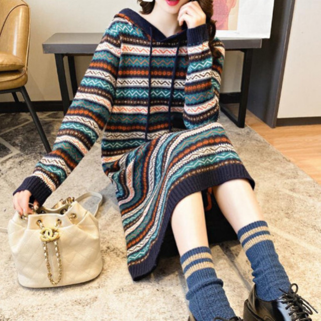 ワンピース 20代 30代 40代 秋 おしゃれ!ニット カジュアル ワンピース フード付き レトロ ゆったり RB-R3-09-BA14-SA-0058