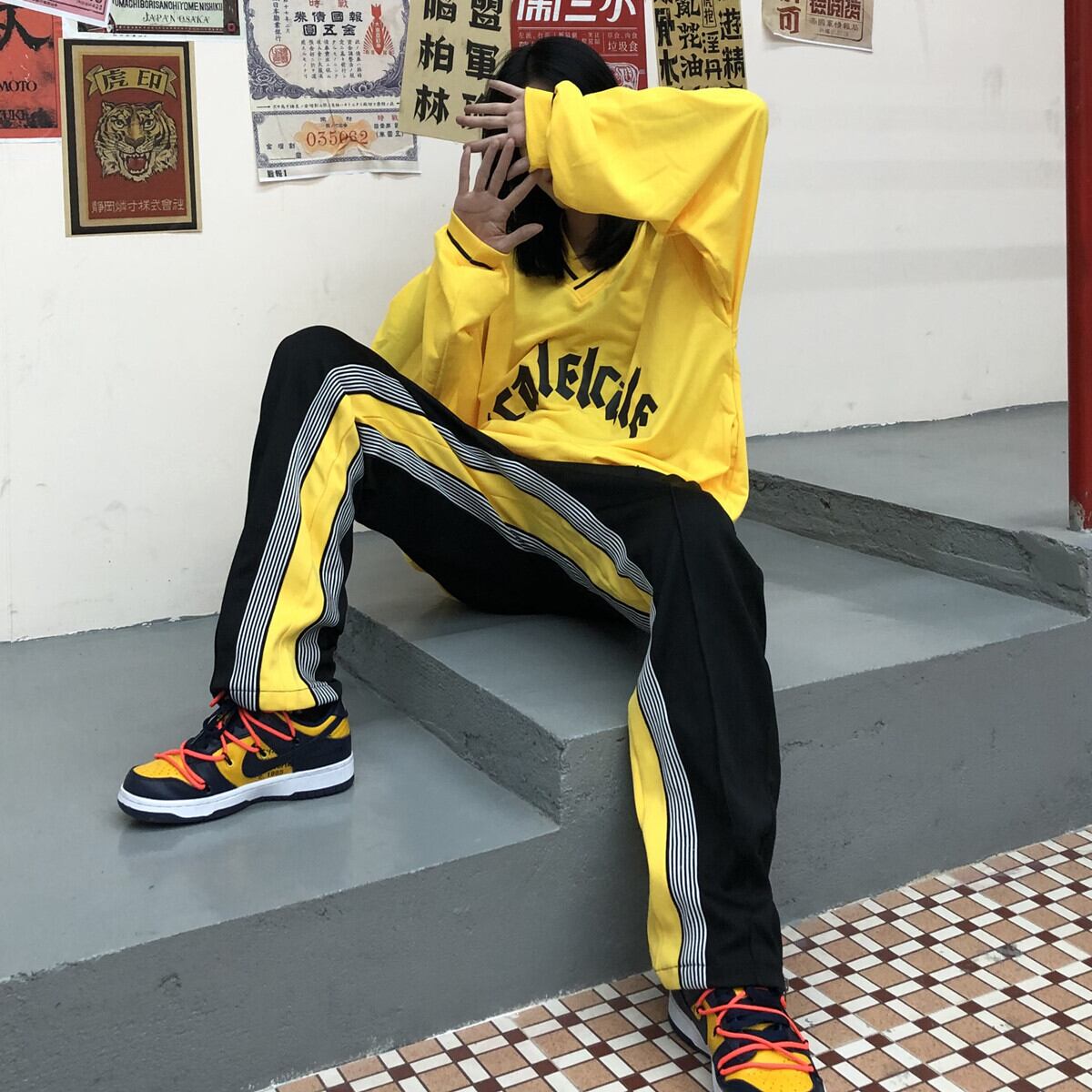 ボトムス 20代 30代 40代 秋 ストリート系配色切り替えハイウエストレギュラー丈カジュアルパンツ RB-R3-09-BA29-CN-0077