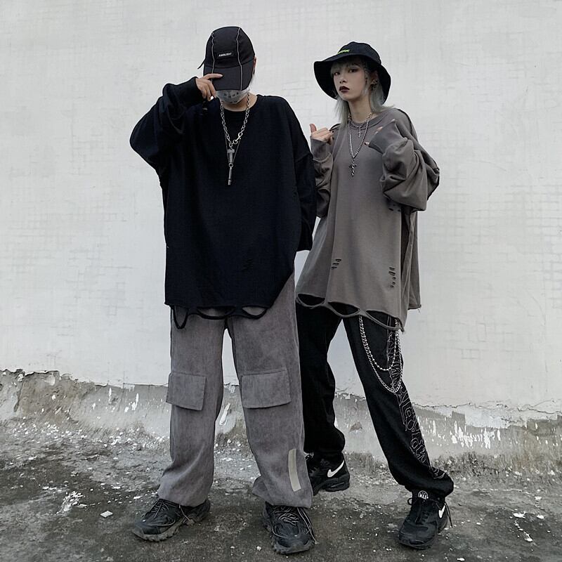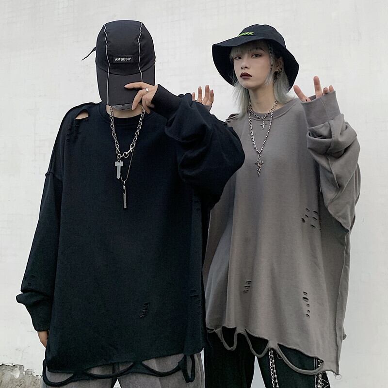 トップス 20代 30代 40代 秋 ストリート系長袖ラウンドネックダメージ加工プルオーバーTシャツ RB-R3-09-BA29-CN-0116