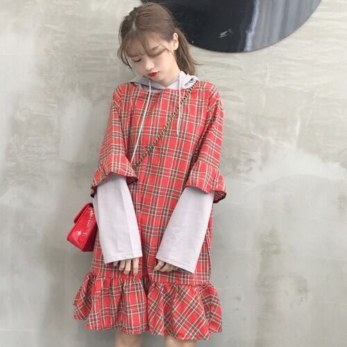 韓国風 ワンピース 秋 カジュアル 人気 フリル フード付き RB-R3-09-BA12-NK-0053
