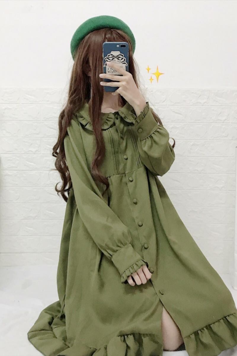 ワンピース 秋 ロリキャンパス可愛いフリル裾長袖 RB-R3-09-BA12-NK-0054