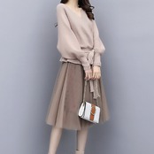 セットアップ 20代 30代 40代 秋 美人度アップ カシュクール ニットセーター+チュールスカート 2色 RB-R3-09-BA14-SA-0069