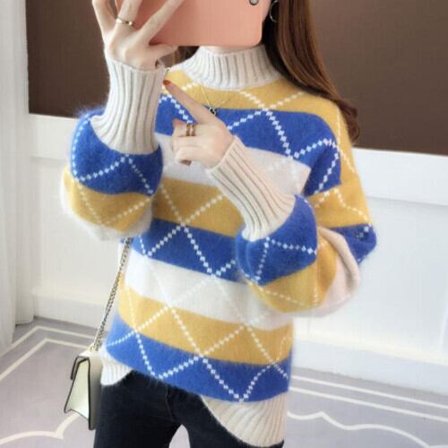 トップス 20代 30代 40代 秋 ニット セーター 配色 ハーフネック 着やすい ファッション RB-R3-09-BA14-SA-0070
