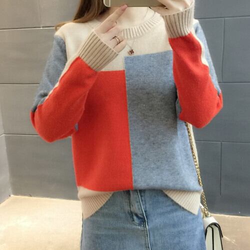 韓国風 トップス 20代 30代 40代 秋 絶対欲しい配色 ニット セーター 切り替え ゆったり 3色 付き合わせやすい RB-R3-09-BA14-SA-0077