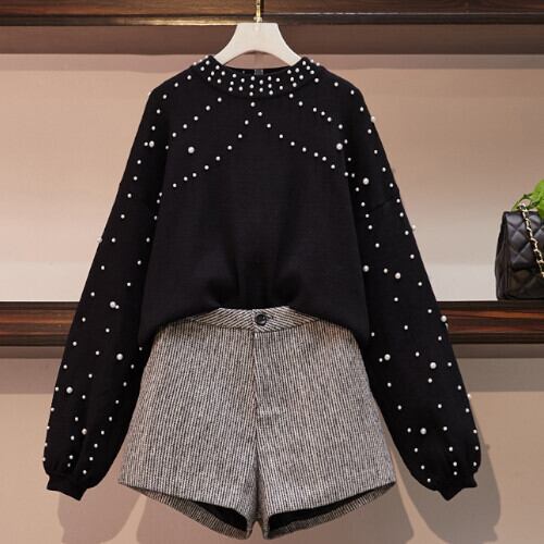 セットアップ 20代 30代 40代 秋 人気商品 セットアップ ァッション ビーズ付き セーター+ショートパンツ RB-R3-09-BA14-SA-0078
