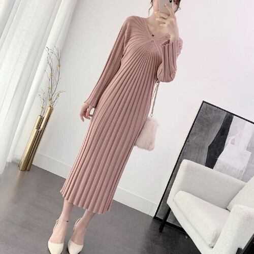 ワンピース 20代 30代 40代 秋 気質アップ エレガント Vネック 無地 人気 ニットワンピース 5色 RB-R3-09-BA14-SA-0086