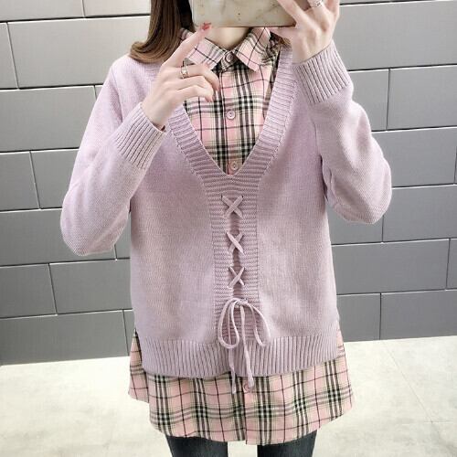 トップス 20代 30代 40代 秋 大好評 レースアップ切り替え ニット トップス 4色 RB-R3-09-BA14-SA-0094