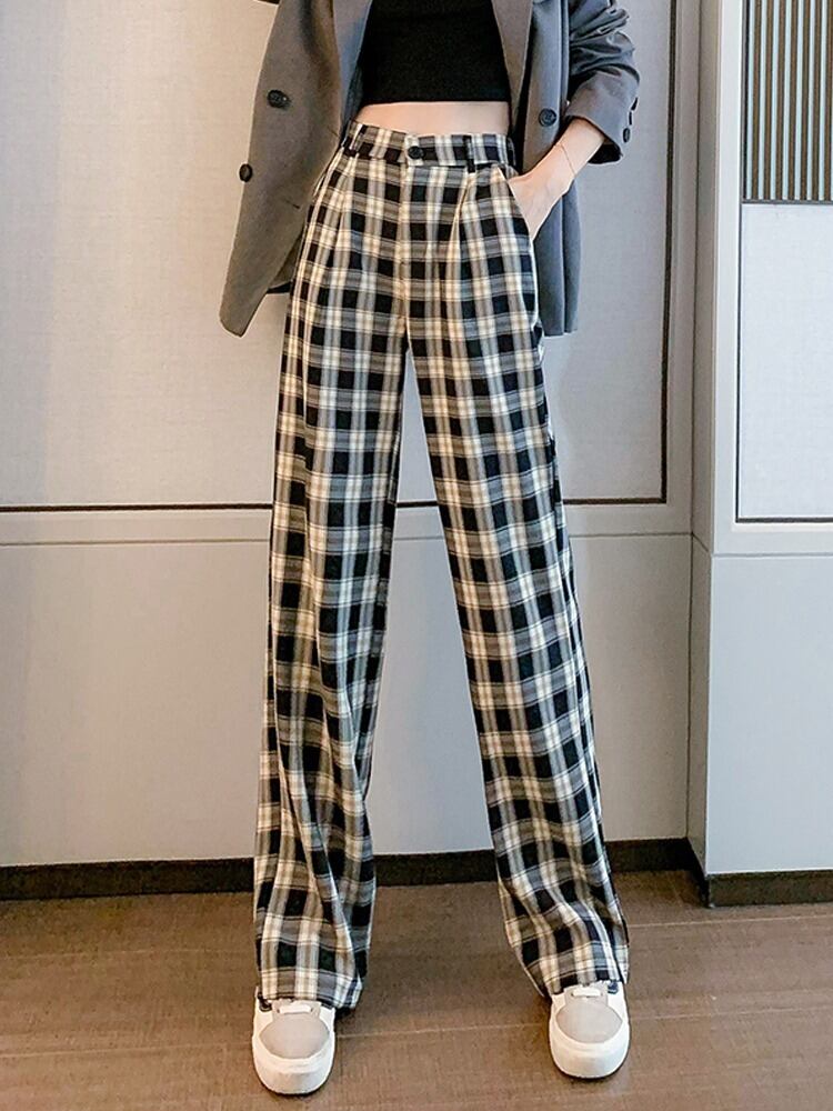 パンツ春秋 オシャレ チェック柄 ワイドパンツ トレンド パンツRB-R3-09-BA12-NK-0094